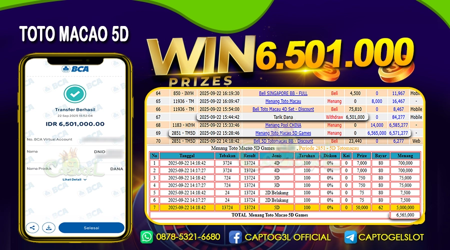 CAPTOGEL – Selamat Kepada Pemenang User ID: b0a*** dalam permainan TOTOMACAU 5D sebesar Rp 6.500.000 22 SEPTEMBER 2025 – bermain di situs game online terpercaya […]
